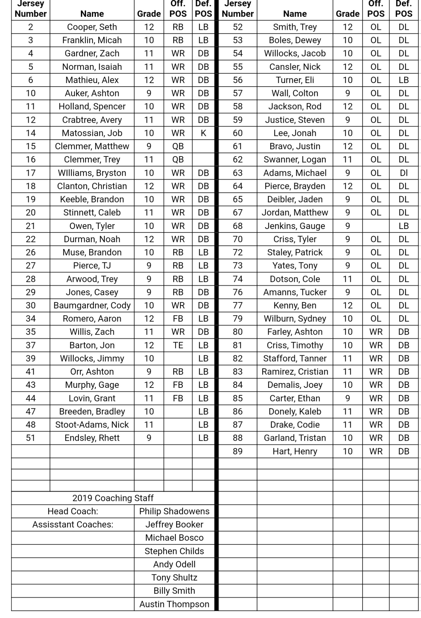 | 16 | Clemmer, Trey | 11 | QB | 62 | Swanner, Logan | 11 | OL | DL | |||