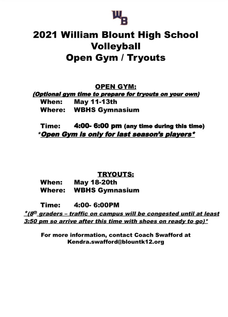 Volleyball Tryouts Here is the information for volleyball tryouts/open gym: Share this: Click to share on X (Opens in new window) X Click to share on Facebook (Opens in new window) Facebook Like Loading... Leave a comment Cancel reply Δ This site uses Akismet to reduce spam. Learn how your comment data is processed.