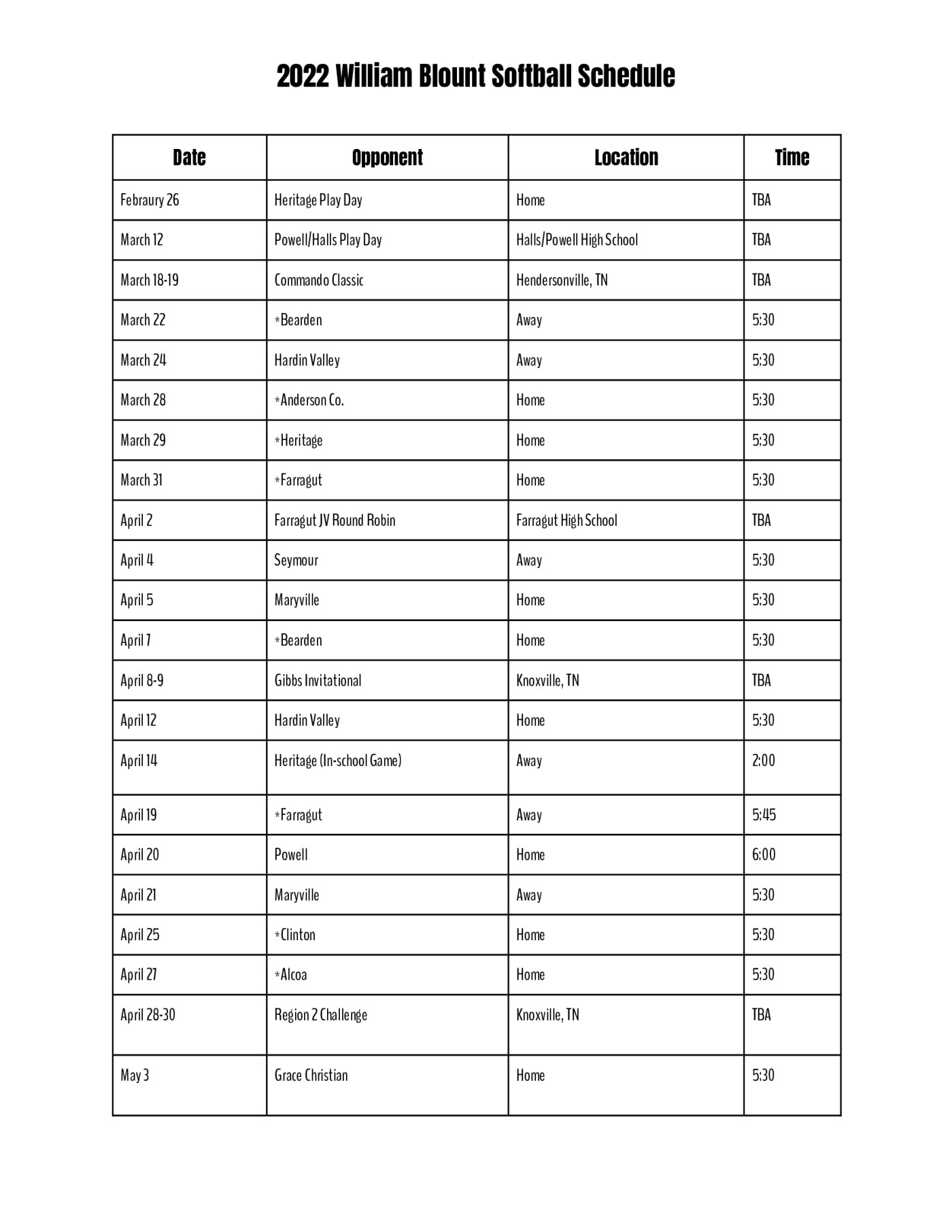 2022 Softball Schedule Share this: Click to share on X (Opens in new window) X Click to share on Facebook (Opens in new window) Facebook Like Loading... Leave a comment Cancel reply Δ This site uses Akismet to reduce spam. Learn how your comment data is processed.