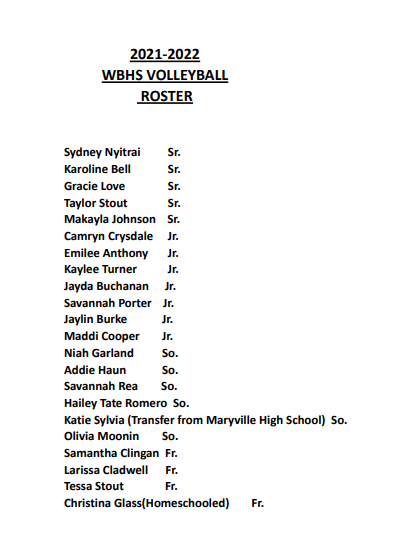 Volleyball at WBHS vs Lenoir City 5:00/6:00